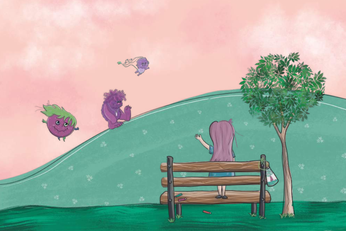 Un giorno, al parco, incontra tre mostri davvero buffi: Poffy, Gorgotto e Frullina. Sono dolci e goffi, con le loro piccole